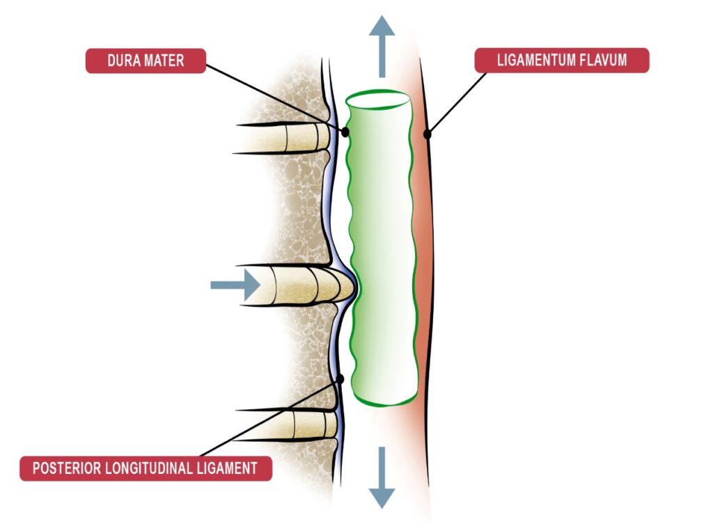 Slika 1 : prikazuje pomjeranje diska prema natrag, te pritisak na kralježničnu moždinu kroz ligament