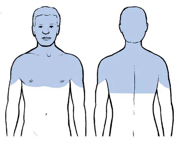 Budući da se bol često osjeti pored ili iznad lopatice, pacijent ima krivi osjećaj da je to bolno mjesto uzrok ili epicenter problema. Međutim, to nije tako! Uzrok problema je protruzija diska u vratu, dok je bolno mjesto (lopatica, trapezius, rame, glava, čak i prsa) samo mjesto odjekivanja boli tj. referentna bol. (slika 2)